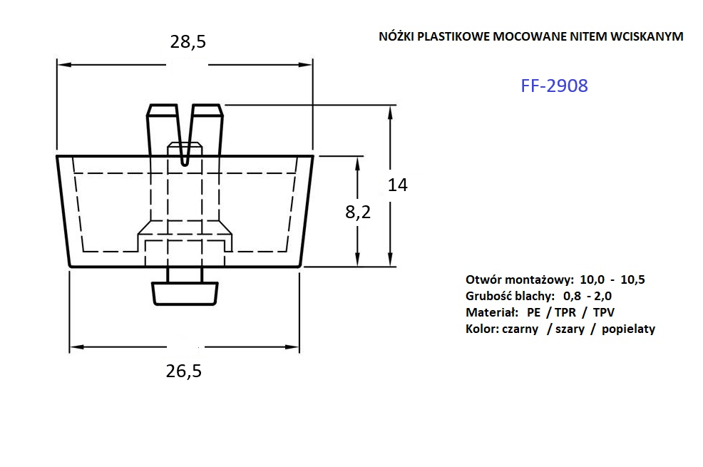 FF-2908, Nóżki stopki plastikowe mocowane nitem wciskanym, Opak.250 szt.